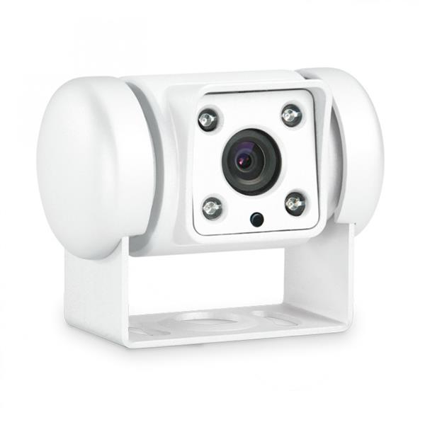 Een nagenoeg onzichtbare kabelgeleiding is een optisch kenmerk van de kleine, witte kleurencamera voor recreatievoertuigen.