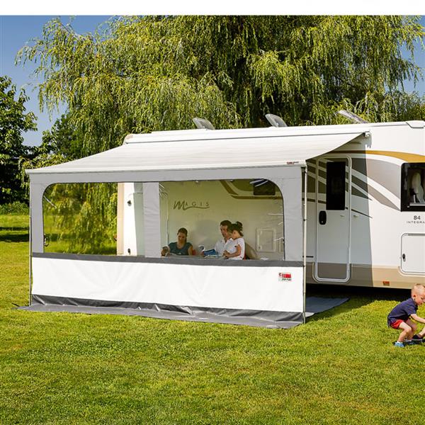 De Fiamma Blocker Pro is een voorpaneel voorzien van één groot crystal raam en slikrand tot aan de grond.