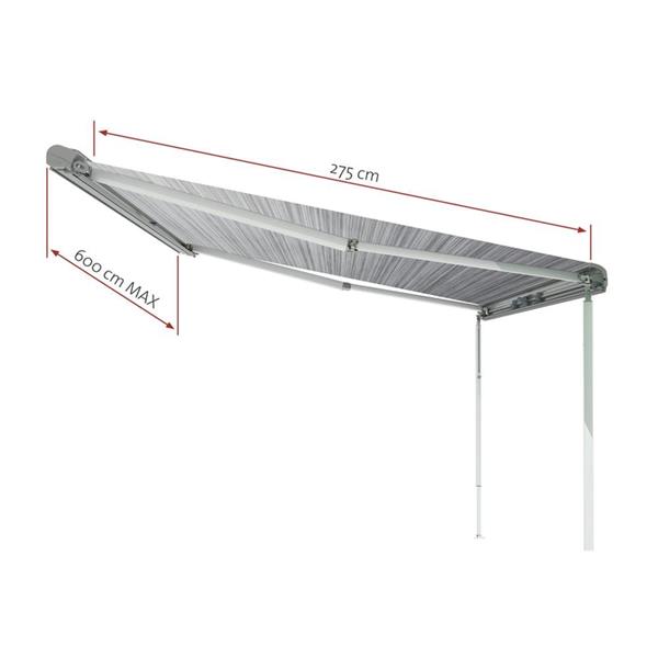 De luifel heeft een cassette van extra sterk aluminium en is leverbaar in drie kleuren.