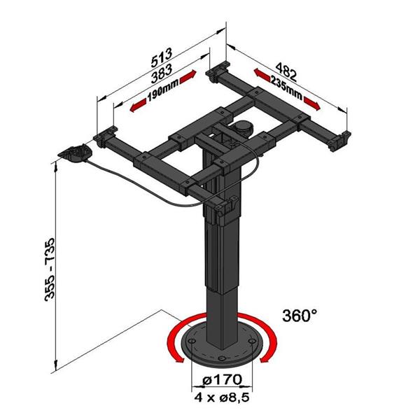 De Ilse tafelpoot 5986 A08 heeft en telescopische voet varierent in hoogte van 35.5 tot 73.5cm. Doormiddel van de handel is deze om hoog te zetten of te laten zakken.