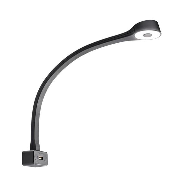 LED lamp met een flexibele zwanenhals en ronde kop. Tevens voorzien van een USB poort 1.8A. Een handige leeslamp waarvan de hals alle kanten opgezet kan worden.