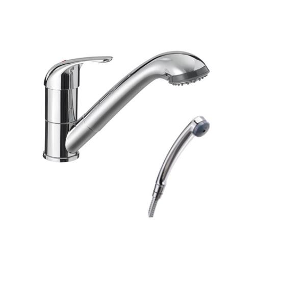 Mengkraan Kama met handdouche Duett chroom. Technische specificaties: Gewicht ca. 0,890kg, Standaard aansluiting F, Microschakelaar 4A, Kabellengte 600mm, Maximale druk 6 bar, Boorgat ø 36mm, Lengte bladdoorvoer 30mm.