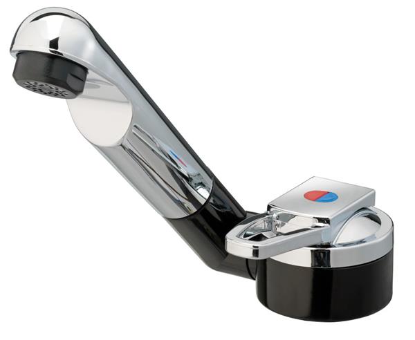 Door de neerklapbare uitloop en de geringe inbouwhoogte van slechts 40mm is deze kraan uitermate geschikt voor wasbakken met een afdekplaat.