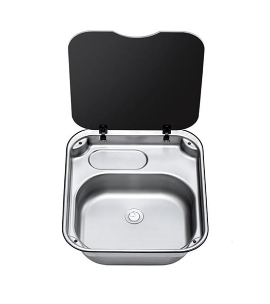 De Serie 34 is een rechthoekige roestvrijstalen spoelbak met een glazen afdekplaat. Hij is voorzien van openingen voor de kraan en afvoer.