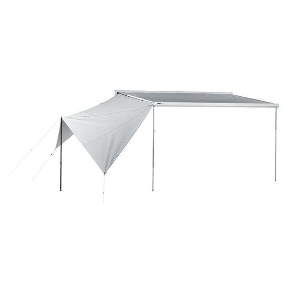 De veelzijdige driehoekige panelen kunnen worden bevestigd aan je luifel en vergroten de leefruimte buiten je kampeerbusje voor extra privacy en bescherming tegen de zon en lichte regen.